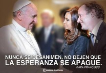Durante la realización de un acto en la localidad de Morón la presidente comparó a Néstor con el Papa, aseguró que Néstor le dijo a la juventud que “salgan a la calle” que transgredan, estableciendo un parangón con el llamado del Papa a los jóvenes argentinos en Brasil, a que “hagan lio”, en referencia a reclamar sus derechos de jóvenes y considerar a los mayores, que la actual sociedad olvida. Cristina pasó del deseo de ser jueza en el 2015, al gusto de ser Papisa, solo espero no se le ocurra ser integrante de la banda Callejeros, ya que el Papa insto a ser callejeros, que la iglesia gane la calle. Es evidente que la señora presidente tiene una sobrevaloración de Néstor.
